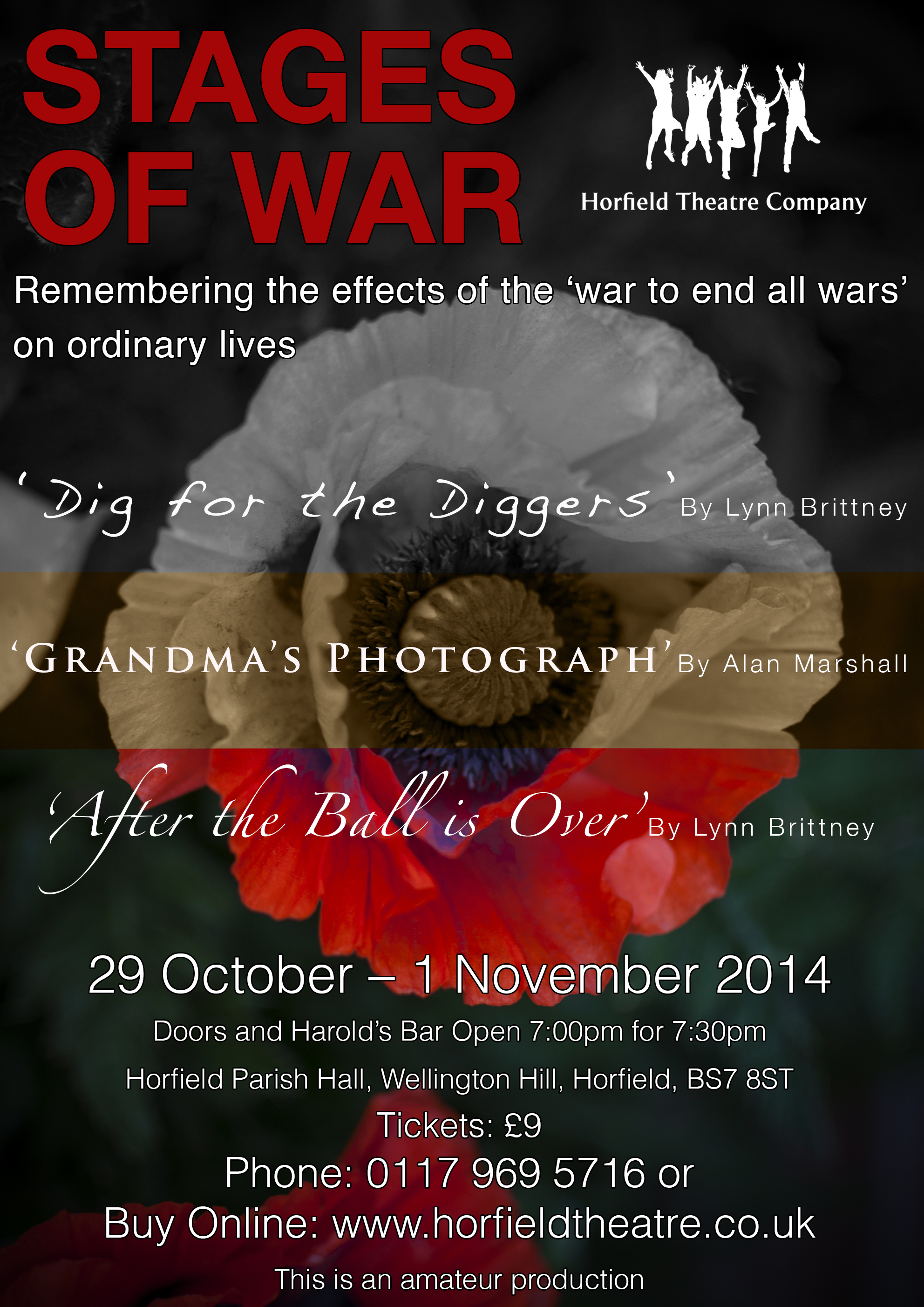 October 9th, 2014In remembrance of the start of “the war to end all wars” one hundred years ago, Horfield Theatre Company will soon present three one-act plays offering a glimpse into those dark times and the people from every walk of life whose lives were affected.