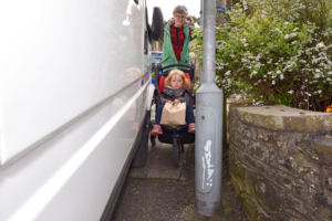 On 13 April, local residents demonstrated how inconsiderate vehicle storage on pavements, across corners and dropped kerbs can make daily life very difficult for people pushing buggies or navigating a wheelchair.
